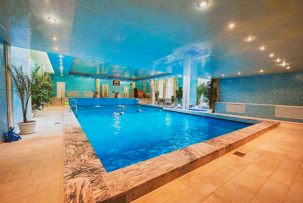 Активные занятия в бассейне являются не только приятным времяпрепровождением, но и разносторонней методикой тренировки мышц и опорно-двигательного аппарата. Всвязи с этим в санатории «Крепость» в Кисловодске для отдыхающих предусмотрен просторный закрытый бассейн размером 10×16 метров. В нем имеется дополнительный комплекс гидромассажных каскадов, что делает оздоровление в воде более эффективным.