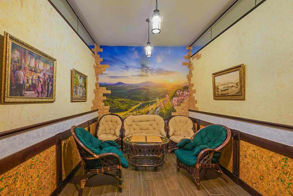 Парная в санатории «Крепость» в Кисловодске представляет собой чистое помещение из натурального дерева с многоуровневыми лежаками. Температура в сауне комфортная для длительного пребывания и безопасная для здоровья. При этом посетители самостоятельно могут регулировать степень жара, подливая воду на камни. Сауна также включает в себя удобную раздевалку и комнату для отдыха, где можно посидеть после бани, попить чай и побеседовать, уютно расположившись в мягких креслах.
